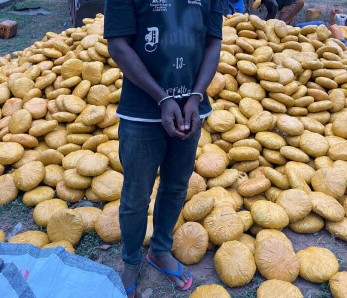 In the presence of the suspect, Amidu Jubril, aged 40, officers forced open the concealed compartments. Inside, police uncovered four thousand (4,000) parcels of compressed dried leaf substances, neatly wrapped in yellow masking tape and suspected to be narcotics.