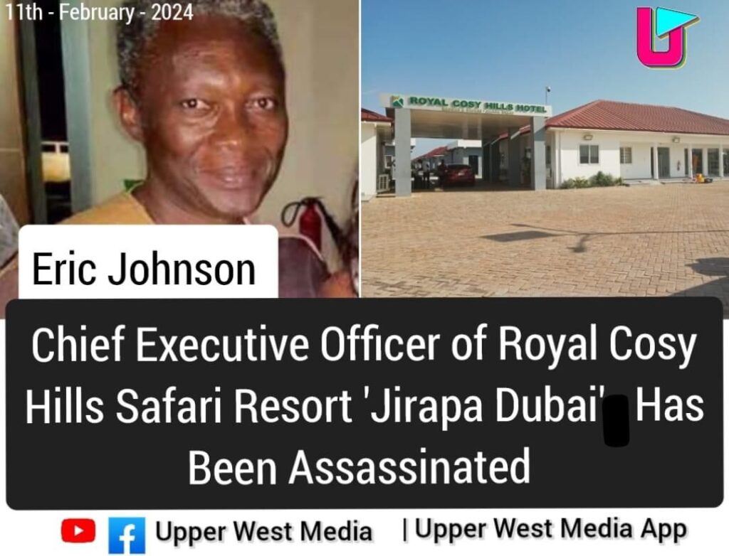 The Ghana Police Service has today 11th February, 2024 arrested four (4) more people in connection with the murder of Eric Johnson, the Chief Executive Officer (CEO) of Cosy Hill Hotel at Jirapa in the Upper West Region, bringing the number of suspects so far arrested to five (5).
