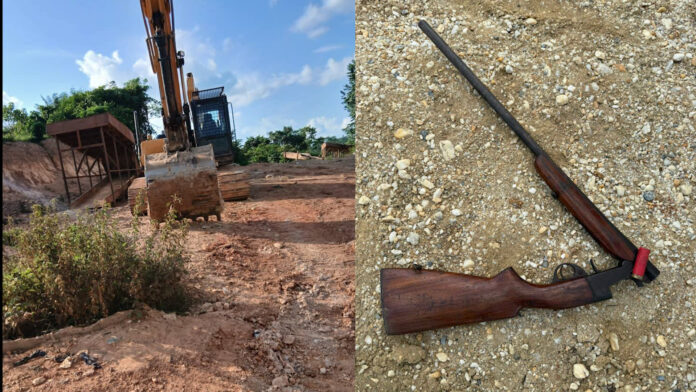 At Nikanika, the task force discovered an abandoned mining site. Although no operators were present, officers retrieved one single-barrel shotgun loaded with a cartridge and three (3) water pumping machines believed to be used in illegal mining activities.