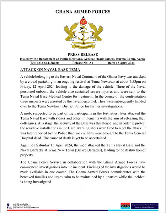 “The Ghana Police Service, in collaboration with the Ghana Armed Forces, has initiated investigations into the incident. Details of the investigations will be disclosed in due course,” the statement assured.