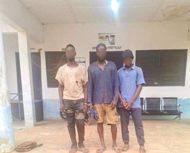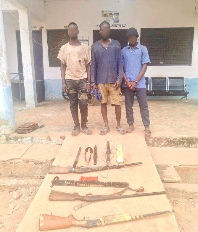 The arrests were made on Monday, February 3, 2026, at Goziri, a community near Vieri, after a police patrol team spotted a group of about five men, each allegedly armed with single-barreled guns and cutlasses.