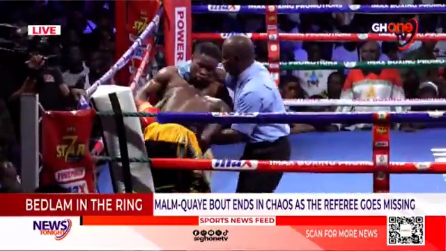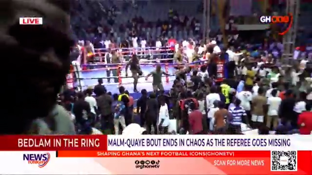 Missiles rained down from the crowd, prompting an astonishing turn of events, referee Shadrack Acquaye fled the ring, leaving the two boxers stunned.
