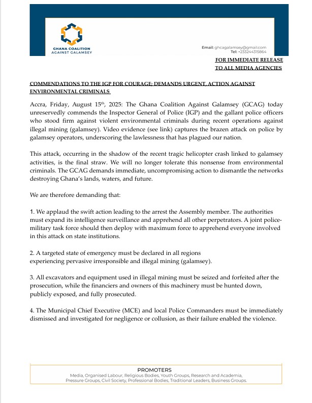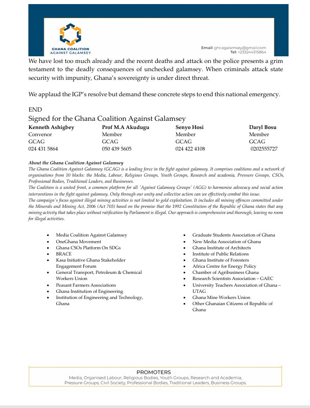 The Coalition stressed that attacks on state security are a direct threat to Ghana’s sovereignty. “We applaud the IGP’s resolve, but demand these concrete steps to end this national emergency,” the statement concluded.