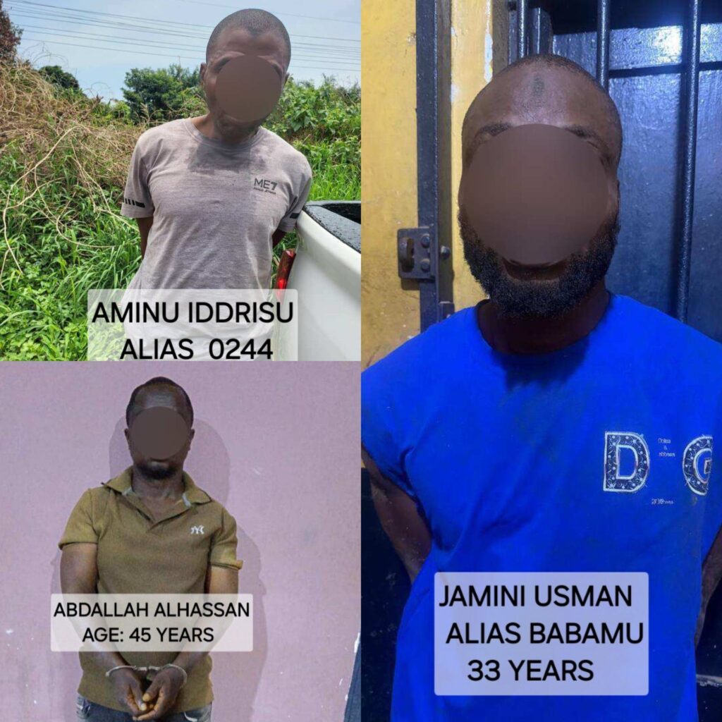 Police say suspects Abdalah Alhassan, Jemini Usman alias Babamu, Aminu Iddrisu alias 0244, and Daniel Debrah are currently in custody assisting investigations.