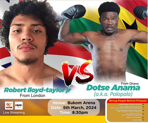 Dotse Anama, (20-7-0) a.k.a Polopala will face Robert Lloyd-Taylor Jr (5-0-0), a professional boxer from the United Kingdom at the Bukom Boxing Arena on 5 March 2024 as one of the classic undercards.