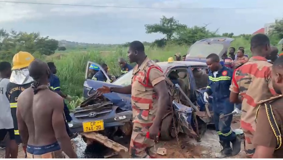 According to the Ghana National Fire Service, the taxi was transporting school children from Winneba to Apam, while the Toyota RAV4 was headed from Mankessim towards Winneba. The accident reportedly occurred when a Sprinter Benz bus made a wrongful overtaking manoeuvre and failed to stop in time.