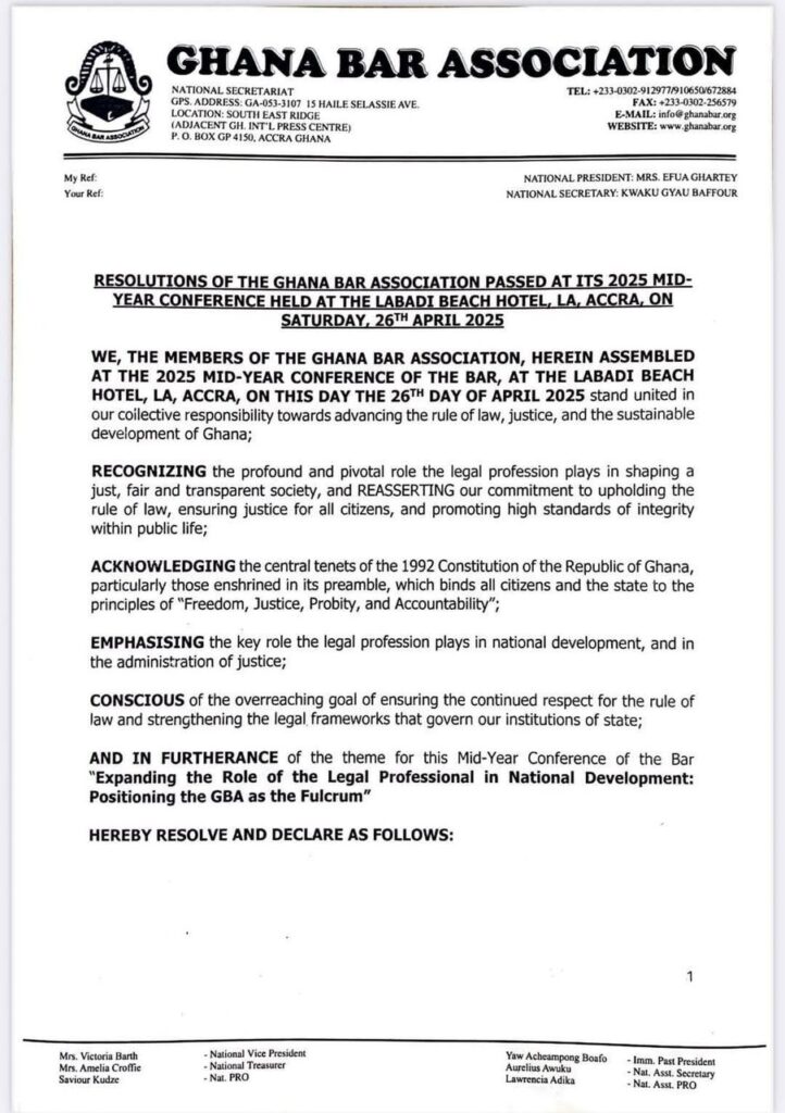 At its Mid-Year Conference held in Accra, the GBA passed a series of resolutions questioning the legality of the suspension and the process through which it was carried out.