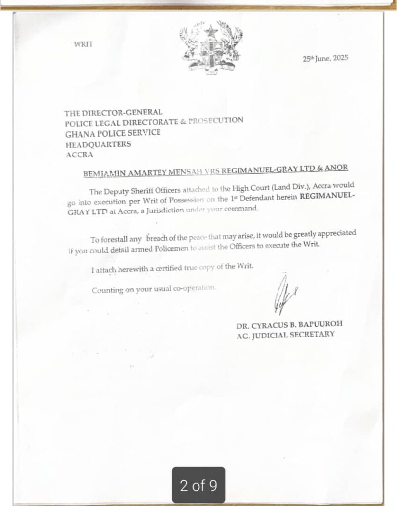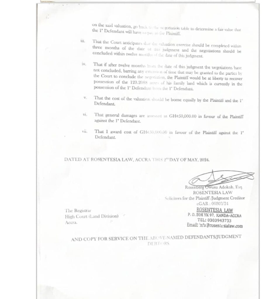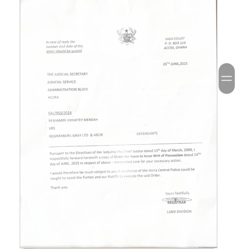 On June 24, 2025, the High Court ruled in favour of the family, directing Regimanuel Grey Limited to release 123 acres of undeveloped land back to its rightful owners. The judgment was followed by formal possession procedures, during which court bailiffs served both parties.