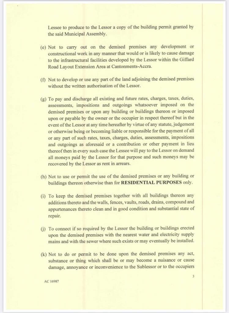 “In consideration of the sum of One Hundred and Sixty Thousand, Seven Hundred and Fifteen Cedis (¢160,715.00) paid by the Lessee to the Lessor as premium (the receipt of which payment the Lessor hereby acknowledges) and in further consideration of the payment of the annual ground rent herein stated and the observance and performance of the covenants, stipulations, and conditions herein contained, the Lessor hereby leases to the Lessee all that piece or parcel of land known as Plot No. 8 measuring an approximate area of 0.24 acres situated within the Giffard Road Layout Extension Area-Accra at Cantonments-Accra in the La Dade Kotopon Municipal Assembly in the Greater Accra Region of the Republic of Ghana, TO HAVE and TO HOLD same unto and to the use of the Lessee for a term of Ninety-Nine (99) years with effect from the 1st day of January, 2021, yielding and paying therefore unto the Lessor an annual ground rent of Six Thousand, Seven Hundred and Twenty Cedis (¢6,720.00) payable yearly in advance on or before the 1st day of January in every year, the payment for the period from the 1st day of January, 2021, to the 31st day of December, 2021, having been made on or before the execution of this lease. This said amount shall be subject to revision by the Lessor every fifth (5th) year of the term hereby granted,” part of the document reads, which was listed by one Alex Quaynor.