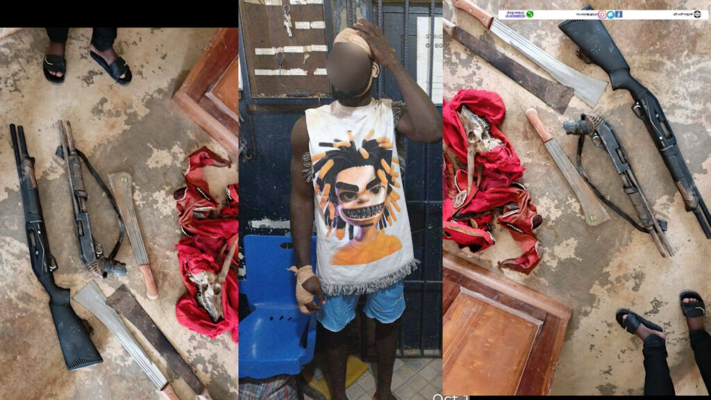 Police retrieved several exhibits from the scene, including: Two pump-action guns, three machetes, four motorbikes, one tricycle, and a Traditional regalia
