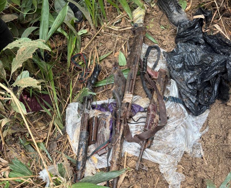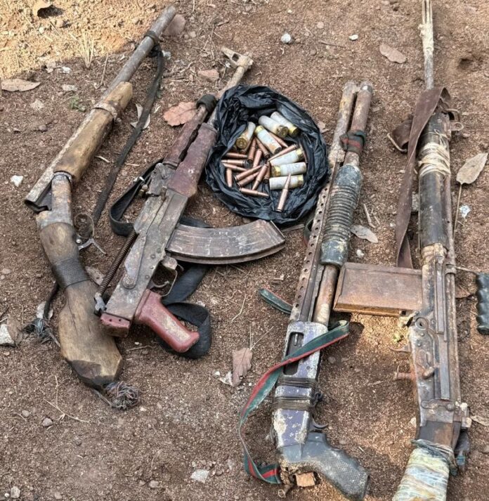 Items retrieved at the scene included two pump-action guns loaded with ammunition, one unbranded pistol, twenty-five live cartridges, and six spent cartridges.