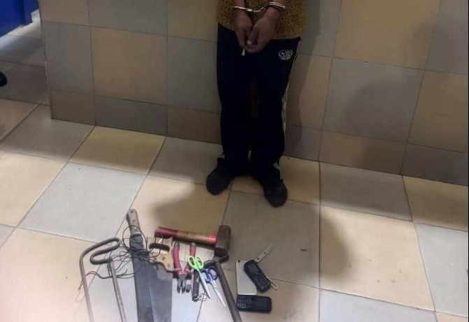 A search at his residence in Abokobi uncovered an alarming cache of suspected weapons and tools, including a cutlass, hammers, scissors, a hacksaw, jack knife, saw, cutter, and three mobile phones.