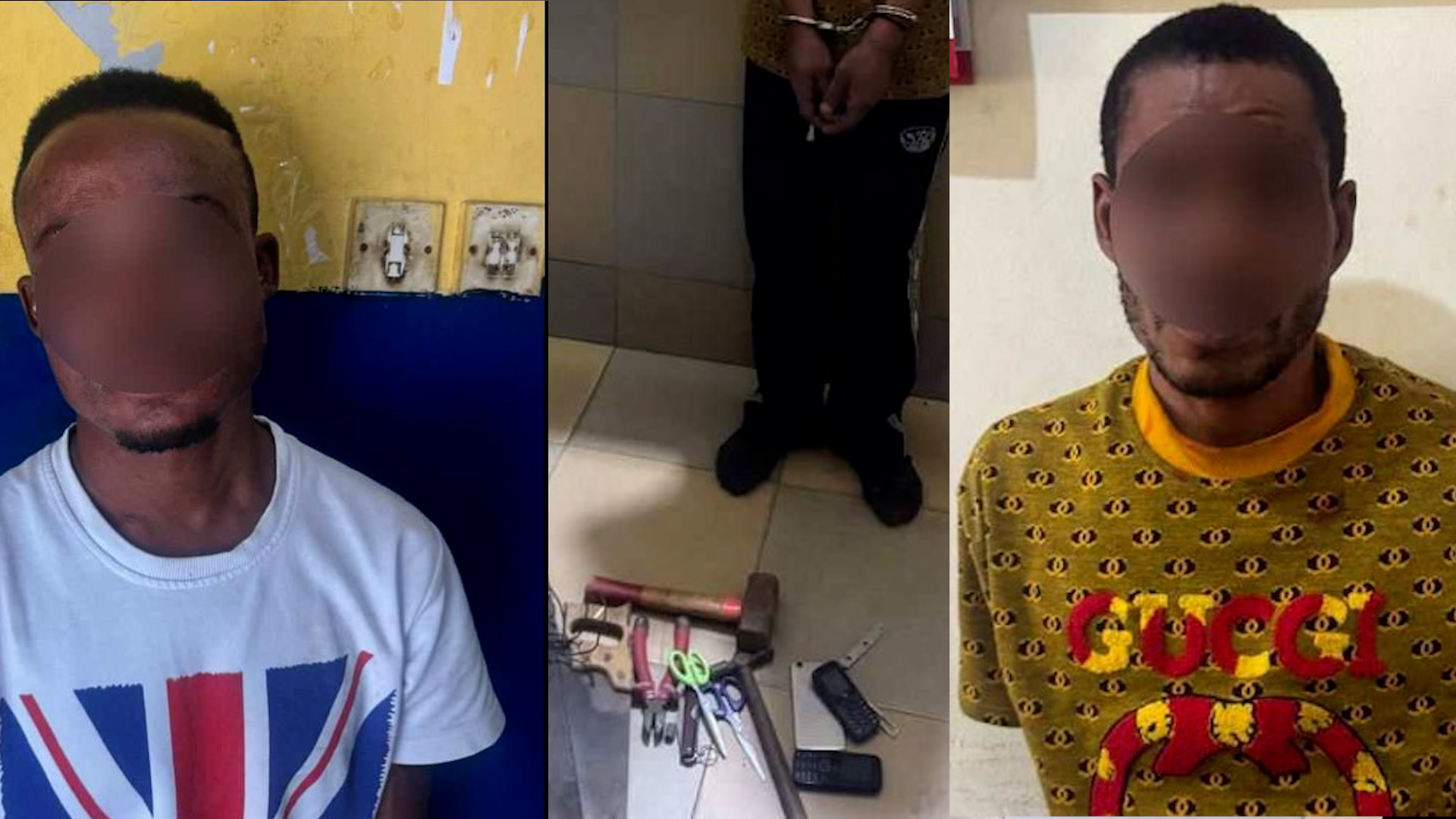 A search at his residence in Abokobi uncovered an alarming cache of suspected weapons and tools, including a cutlass, hammers, scissors, a hacksaw, jack knife, saw, cutter, and three mobile phones.