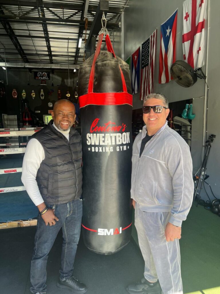 Ace boxing manager Peter Kahn and Ghanaian sports promoter Sammy Anim Addo of Bronx Boxing Promotions have met at the Centenos SweatBox Boxing Gym in Florida to strategize on finding opponents for undefeated WBO Africa Featherweight champion John Laryea aka ‘Expensive Boxer.
