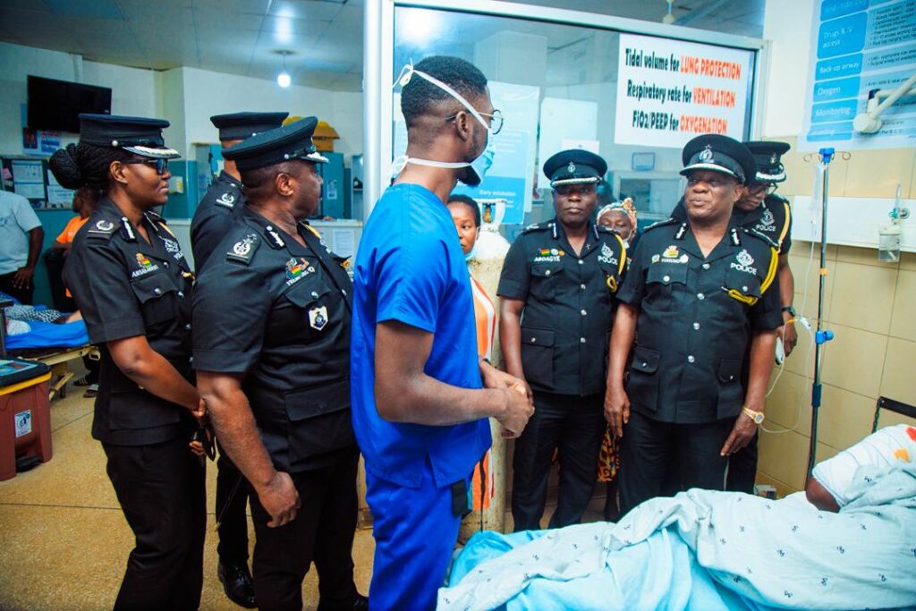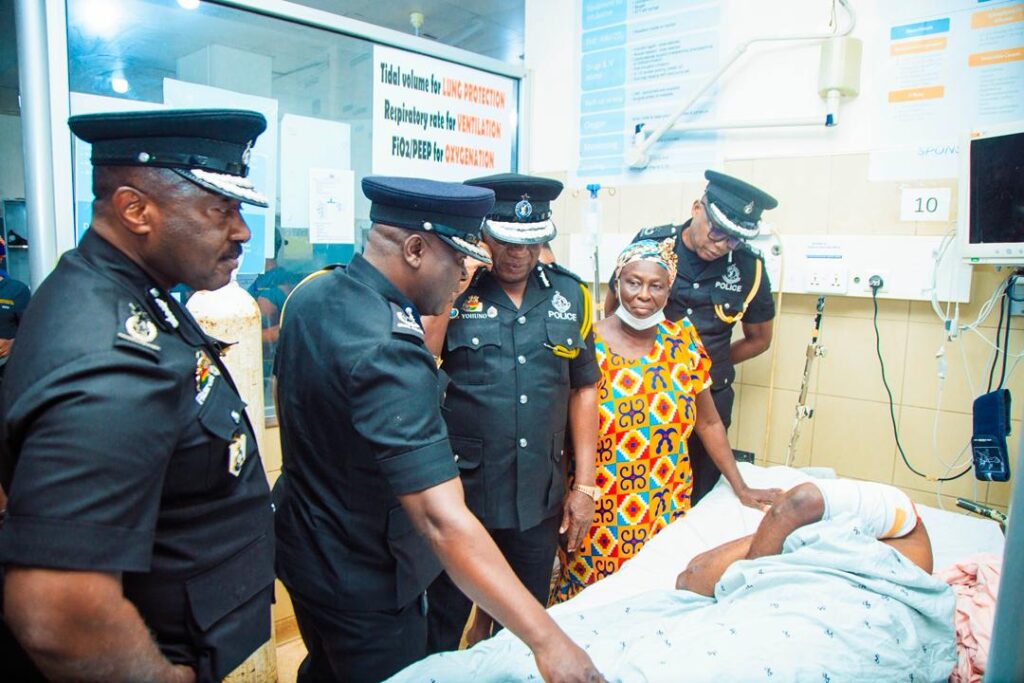 The Inspector-General of Police (IGP), Christian Tetteh Yohuno, has visited the Komfo Anokye Teaching Hospital in Kumasi to check on a police officer who was critically injured during violent clashes between two rival groups at Sampa in the Bono Region.