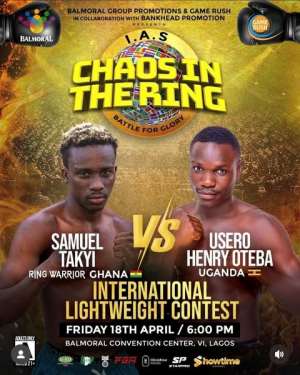 Nicknamed The Ring Warrior, Takyi will fight at the Balmoral Convention Center in Victoria Island, Lagos, as part of the Chaos in the Ring event.