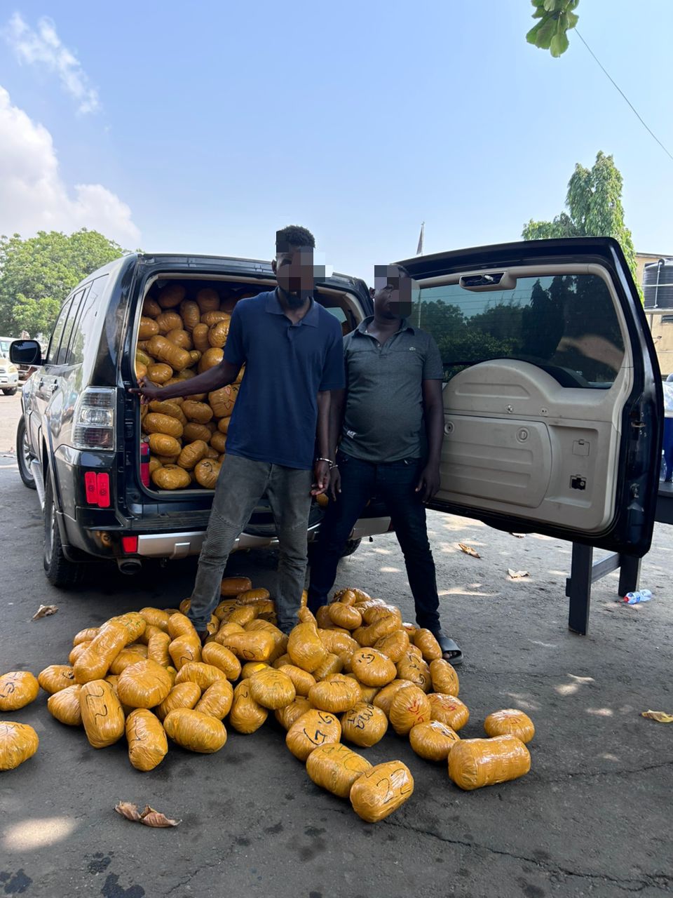 A search conducted on the vehicles led to the discovery of several compressed, yellow-wrapped parcels suspected to be narcotic drugs. The suspects were immediately arrested, and both vehicles were escorted to the police station for further action.