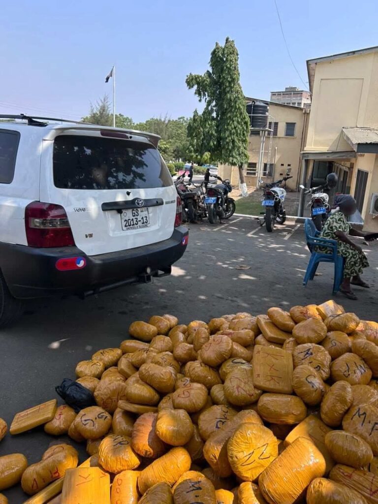 On January 12, 2026, the suspects and exhibits were handed over to the Tema Regional Criminal Investigations Department (CID), where inventories and photographs were taken. Preliminary counts showed 872 parcels concealed in the Mitsubishi Pajero and 741 parcels in the Toyota Highlander, bringing the total to 1,613 parcels.