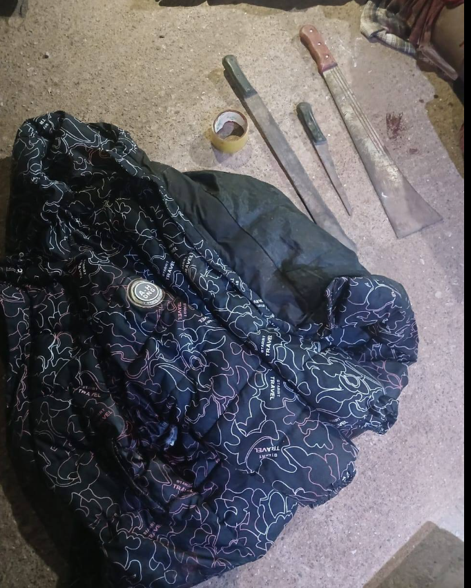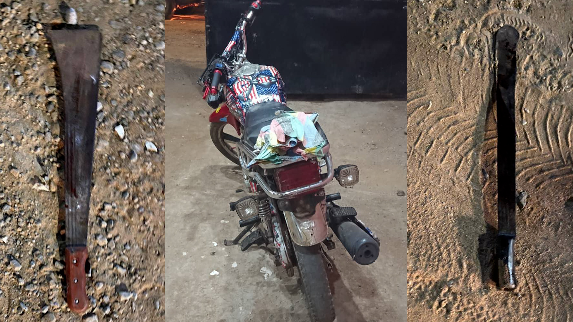 The police retrieved the following items from the scene: three face masks, three machetes, and one unregistered Royal 125 motorbike. The bodies of the deceased suspects have been conveyed to the Police Hospital for preservation, identification, and autopsy.