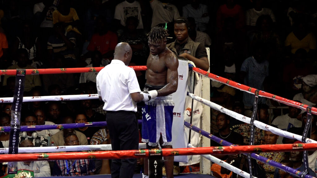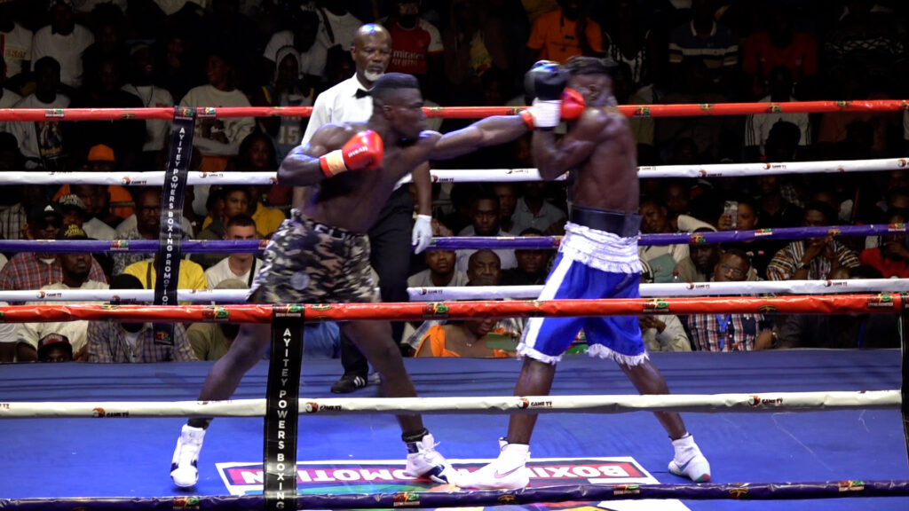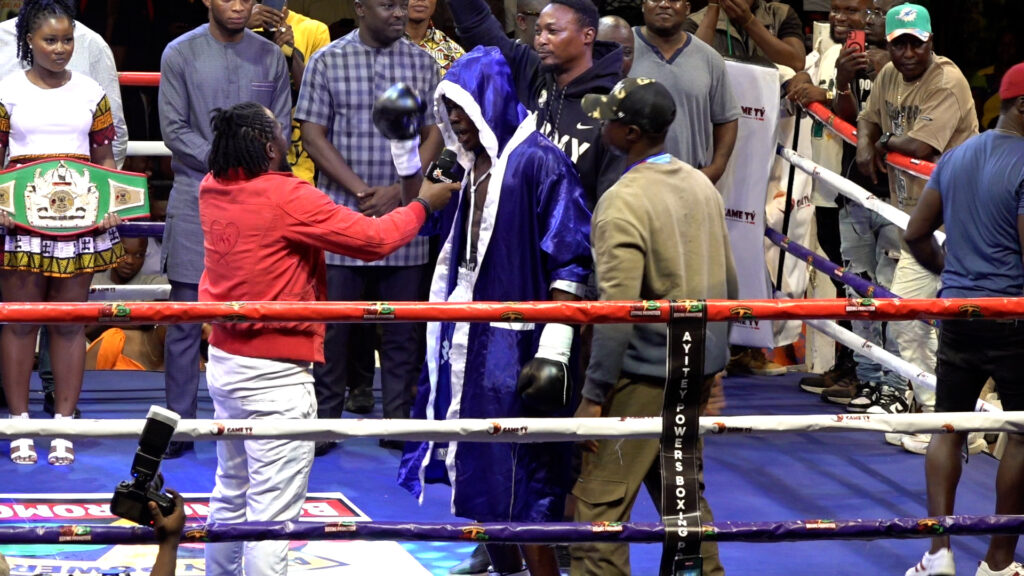 The Nine Bouts event at the Bukom Boxing Arena is the maiden edition of the Ayitey Powers Promotions, which also featured the return of Wasiru Gyatabi Mohammed after four years of exile from Boxing. Despite showing signs of reduced energy and speed due perhaps to the long absence from the ring, the former WBO Africa and national super Bantamweight champion, Wasiru Gyatabi Mohammed, lived up to expectations by retaining his unbeaten records in 13 fights with 12 knockouts after stopping Michael Akramah Tetteh in round five of their eight-round lighter weight contest.