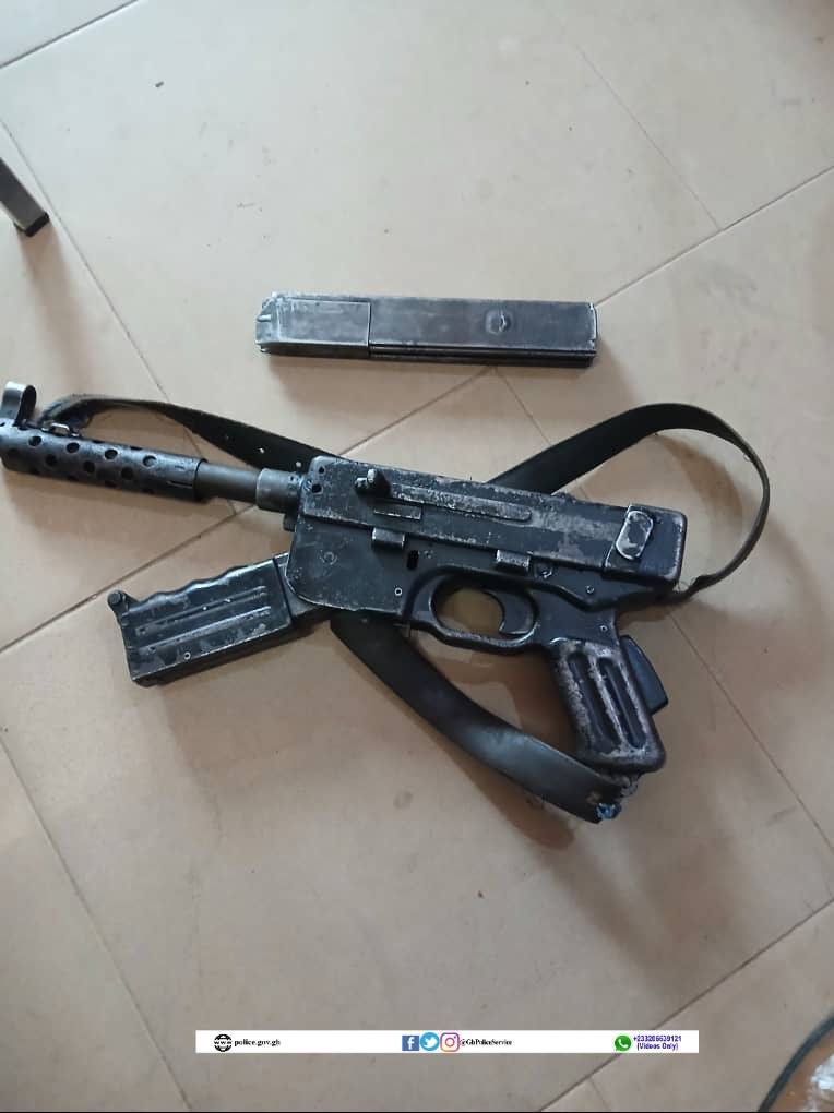 A search conducted on suspect Hakeem Imoro led to the discovery of a submachine gun (SMG) and twenty-one (21) rounds of ammunition concealed in his belongings.