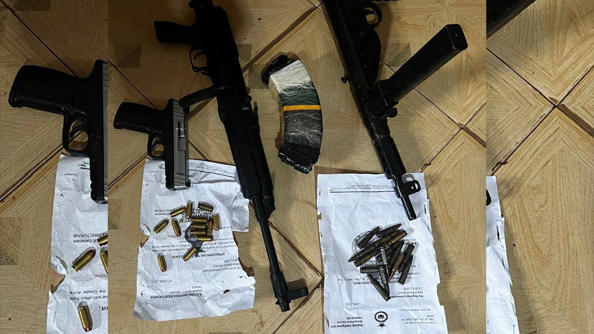 During the arrest, law police officers recovered a cache of weapons and ammunition, including one AK-47 rifle, one sub-machine gun (SMG), one Smith & Wesson SD40 VE pistol, and one single-barrel gun. Also retrieved were two magazines, fifteen rounds of AK-47 ammunition, thirteen rounds of pistol ammunition, twenty-seven additional rounds of unspecified ammunition, and five BB cartridges.