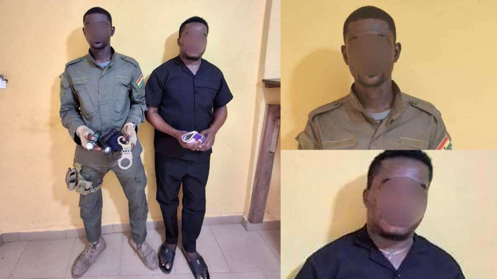 The suspects, identified as Foster Delord, aged 40, and Prince Worvi, aged 38, both of whom claim to be ex-military officers, were apprehended after police received complaints that they had been visiting gold buyers and falsely presenting themselves as taskforce officials.