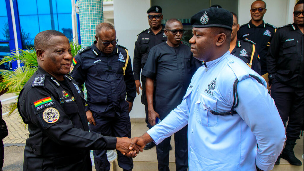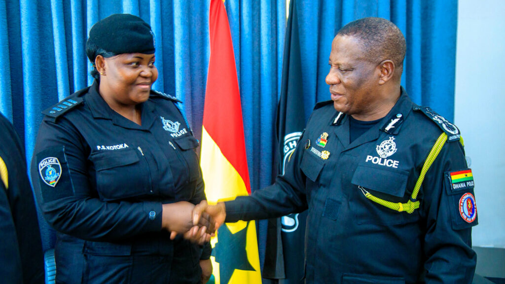 The Inspector-General of Police (IGP), Christian Tetteh Yohuno, has promoted two Police Service officers for their bravery and vigilance during a snap check operation that thwarted a robbery attempt and rescued two victims in Ablekuma Borkorborkor, Greater Accra Region.
