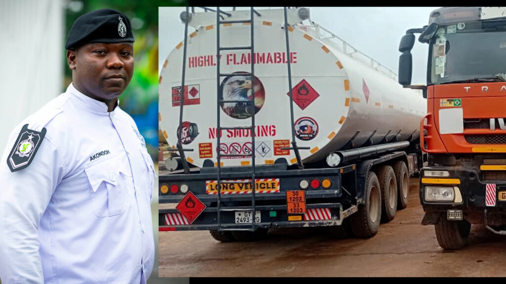 At about 12:30 a.m. on Thursday, 7 August, the officers were conducting routine vehicle checks when they stopped a green pickup truck carrying three passengers. Two jumped from the truck, shouting for help, and revealed they had been attacked the previous night during a robbery involving their 5,400-litre fuel tanker near Nsawam.