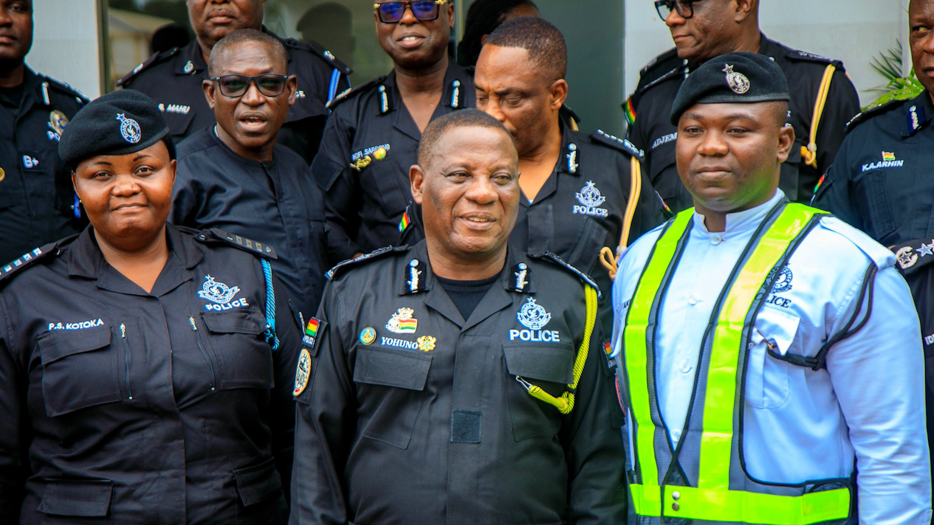 The Inspector-General of Police (IGP), Christian Tetteh Yohuno, has promoted two Police Service officers for their bravery and vigilance during a snap check operation that thwarted a robbery attempt and rescued two victims in Ablekuma Borkorborkor, Greater Accra Region.