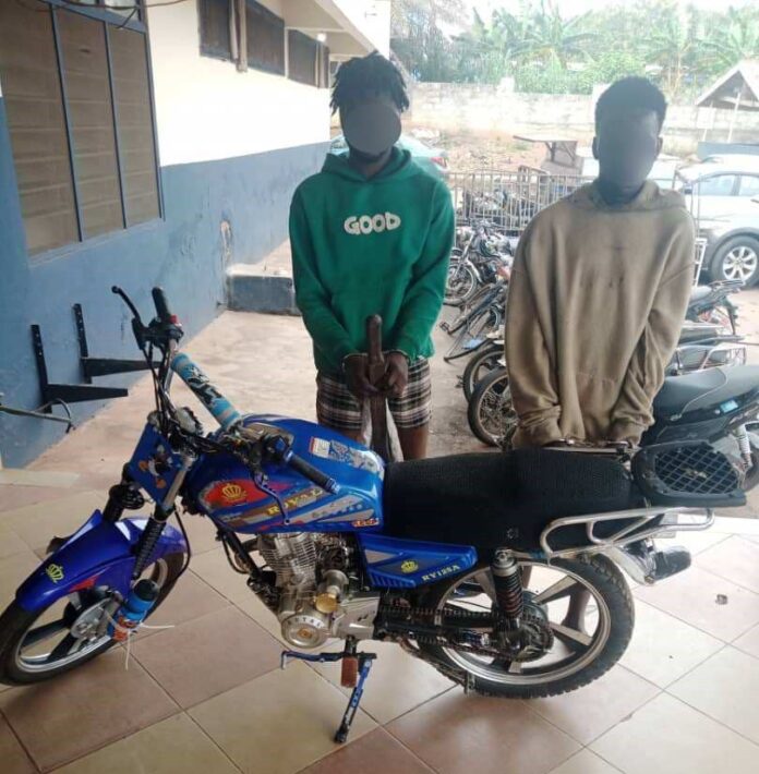 The suspects, identified as Issah Abdul, aged 22, and Abdul Rahman, aged 20, were reportedly riding an unregistered blue Royal motorbike when they attacked their victim around 5:45 a.m.
