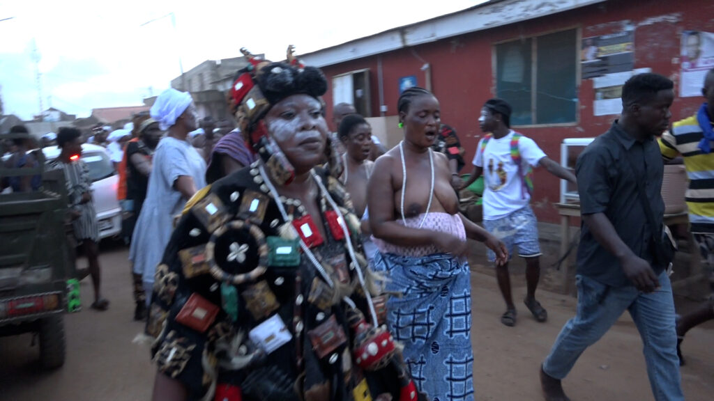 As the procession reached its peak, Naa Yomo Ayemoadee arrived at her childhood home before proceeding to the sacred Gborbu Temple for a private ritual ceremony lasting about 30 minutes.