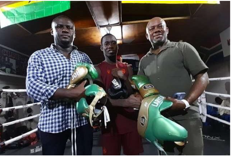 The customized boxing training equipment from multiple award-winning boxing managers, Peter Kahn was presented by Pastor Henry and Ohene Ameyaw, co-manager of the WBO titlist.