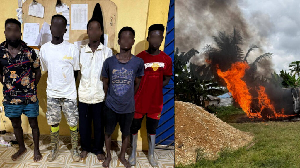 Police intervened and successfully rescued 11 workers from the area. Five suspects, Gyenyame Owusu (38), Matthew Asamah (24), Nana Yaw (15), Yaw Opoku (16), and Kojo Agyei (21), have been arrested for causing harm and unlawful damage.